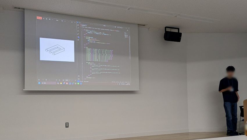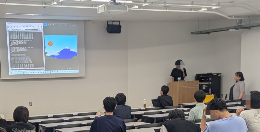 今回の課題は「自身が美しいと思う絵を生成するプログラムを作成する」というテーマで、各自の作品を発表しました。プログラムの工夫や、美的感覚が反映された多様な作品がありました。